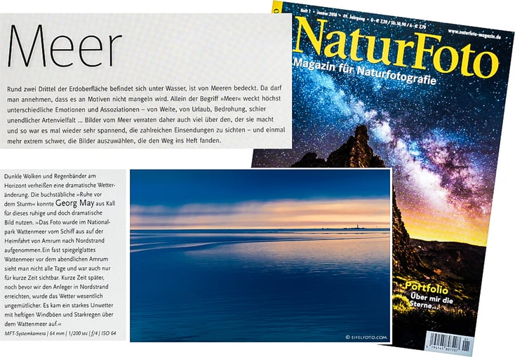 Herzlichen Dank an die Redaktion der Tecklenborg Verlag GmbH Schweinfurt für die Auswahl meines Fotos bei den besten Leserfotos zum Thema Meer und die Veröffentlichung meines Fotos im Heft 01/2018.